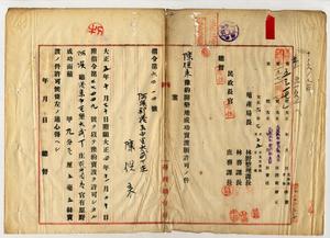 [阿緱廳港東中里大武丁庄]陳倪來豫約開墾地成功賣渡願許可ノ件