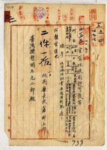 [桃園廳三角湧支廳蕃地雙合]官有地使用許可報告(渡邊信之助)