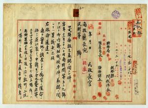 舊式糖設立承認ニ關スル通達(南投廳)
