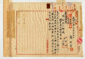 [新竹廳竹北一堡南埔庄土名番婆坑ヨリ北埔街ニ至ル運炭用手押輕便鐵道敷設]鑛業用土地使用届(簡阿牛)