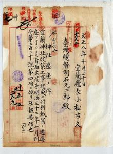 宜蘭神社移轉設計變更許可並神社遷座報告(宜蘭廳)