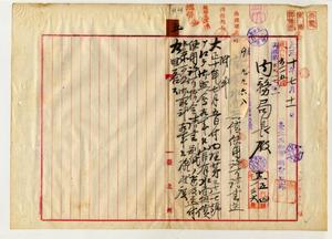 官有水面無償使用許可及請書(台北廳公共埤圳組合管理梅谷光貞)
