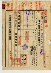 [臺南州新豐郡龍崎庄中坑子]豫約開墾地成功賣渡報告(吳來朝)
