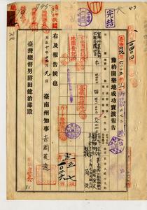 飛田宣文外一豫約開墾地成功賣渡報告