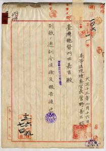 司法警察官吏ノ職務ヲ行フ者ニ交付スヘキ證票取扱手續報告ノ件(高等法院檢察官長)