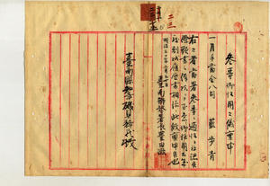 藍步青ヲ台南弁務署參事(月手當八円)ニ任命ノ件(元臺南縣)