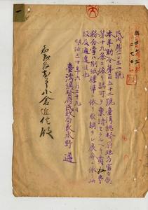 地方官廳事務分掌標準ニ關スル件通達(元臺南縣)