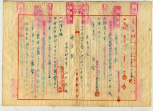 山口正成六級俸下賜、依願免本官、事務格別勉勵ニ付金千七百四十円ヲ賞與ス