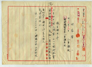 朝鮮總督府宛回答(囑託長野義和ヲ技手ニ任用ノ件)