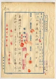 內務省人事課長宛回答(高雄州技手兼府技手安崎文武ヲ地方技師(沖繩縣)ヘ轉用ノ件)