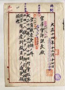 官有財產受領ノ件(泉町稅關廳舍)