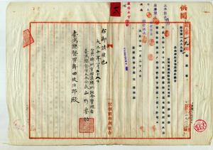 官有財產使用許可ノ件(台南水道水源地所立火力發電裝置使用ノ使用者官佃溪埤圳組合)