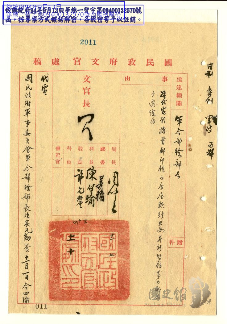 國民政府文官長吳鼎昌電軍令部部長徐永昌為電請撥首都印鑄局房屋歉難照辦並祈轉飭第四廳迅予遷讓