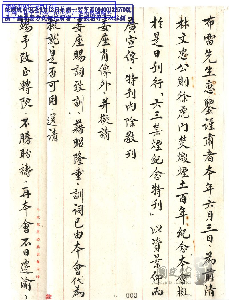 禁煙委員會甘乃光等函軍事委員會委員長侍從室第二處主任陳布雷為本會代擬民國二十八年六三禁煙紀念日訓詞是否可用請轉陳賜予改正