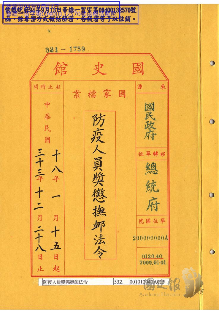 防疫人員卹金條例公布與廢止,防疫人員獎懲條例,防疫人員染疫死亡特給補助金辦法
