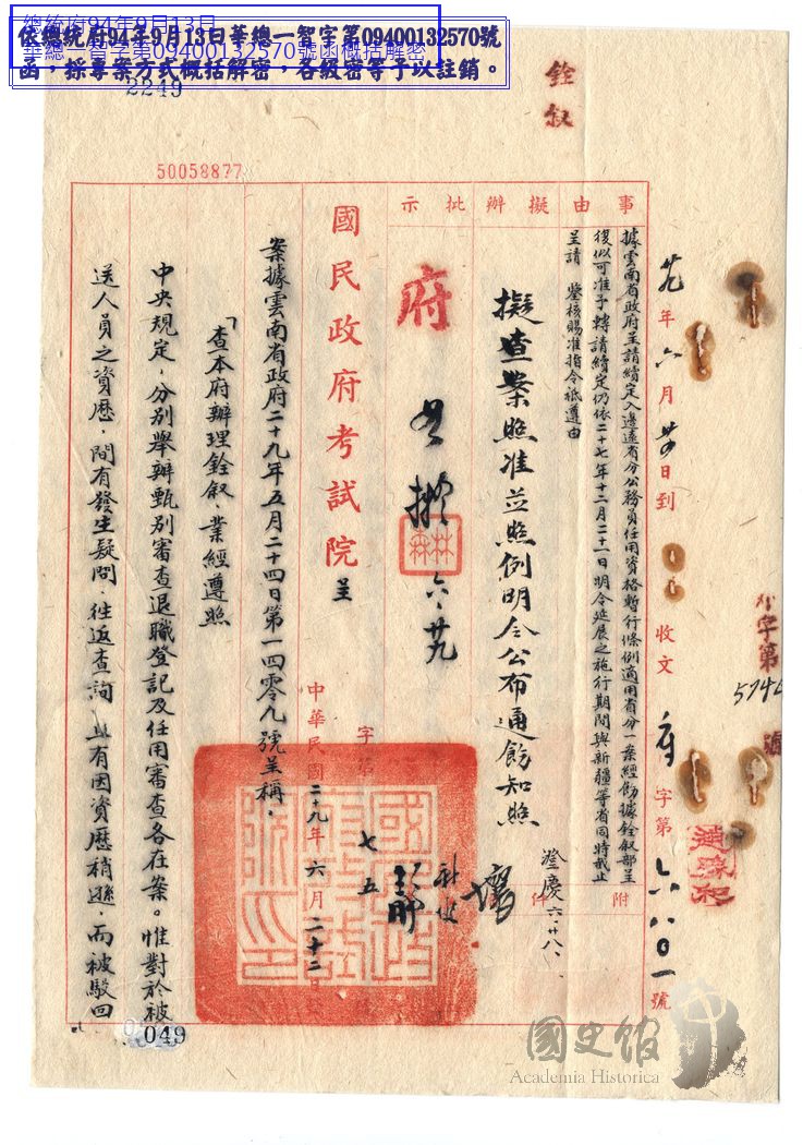 考試院呈國民政府為據雲南省政府呈請續定入邊遠省分公務員任用資格暫行條例適用省分一案經飭據銓敘部呈復似可准予轉請續定仍依二十七年十二月二十一日明令延展之施行期間與新疆等省同時截止呈請鑒核賜准指令祇遵