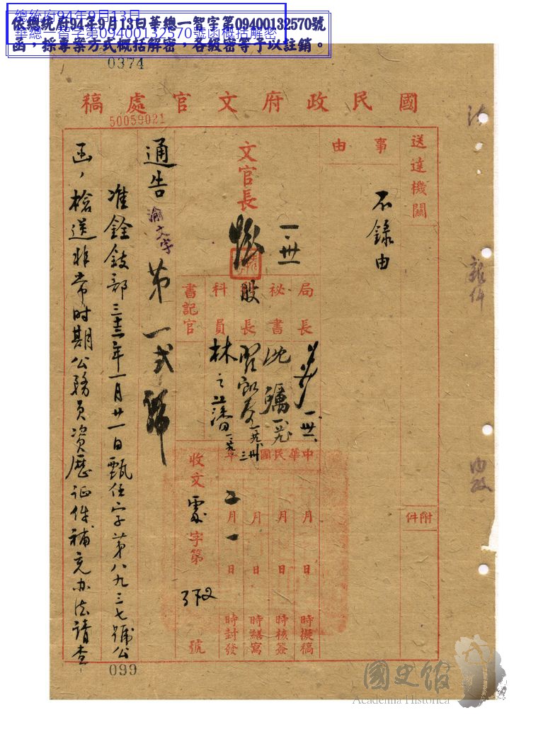 國民政府文官處文告有關非常時期公務員資歷證件補充辦法通告知照