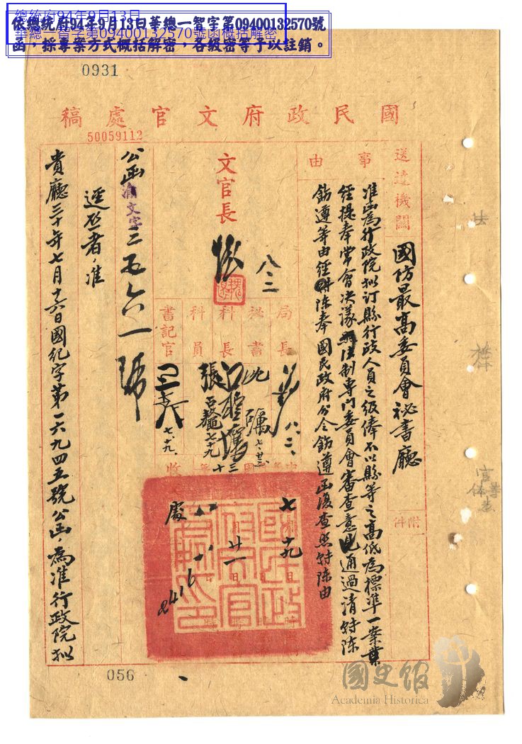 國民政府文官處函國防最高委員會秘書廳有關行政院擬訂縣行政人員之級俸不以縣等之高低為標準一案奉國防最高委員會常會決議照法制專門委員會審查意見通過等奉國民政府分令飭遵函復查照