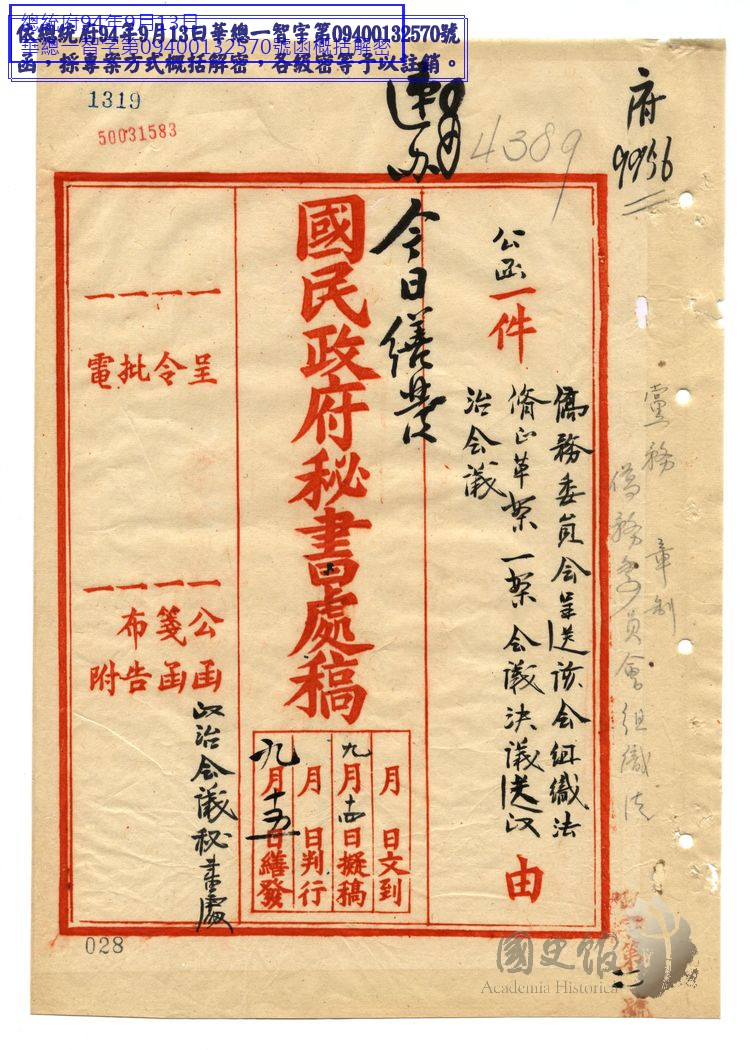 國民政府秘書長呂苾籌函中國國民黨中央執行委員會政治會議秘書處為僑務委員會呈送該會組織法修正草案一案函達查照轉陳
