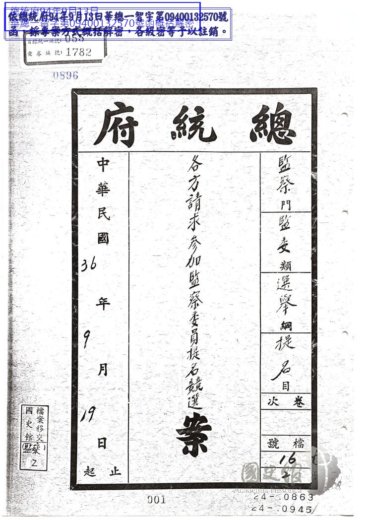 國民政府/總類/監察/監察總目