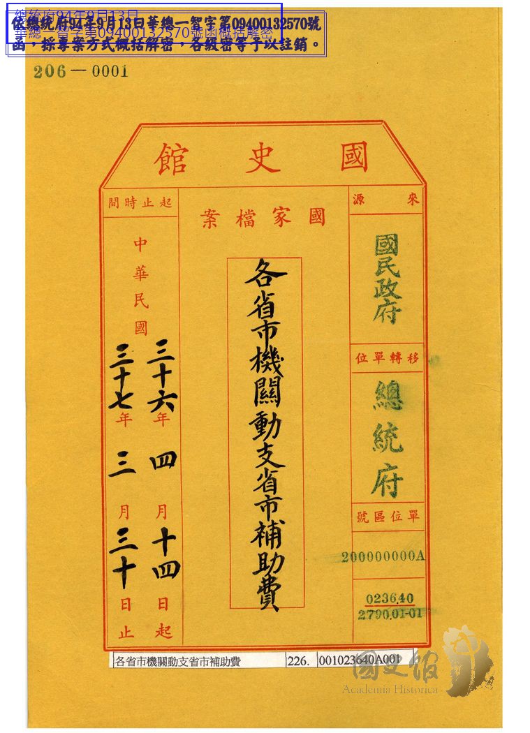 國民政府/主計/補助業務費/省市補助費