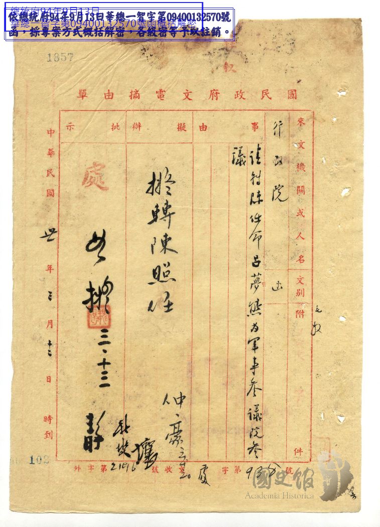國民政府/人事/中央機關人員任免/總統府及所屬機關人員任免