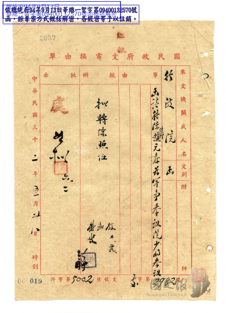 國民政府/人事/中央機關人員任免/總統府及所屬機關人員任免