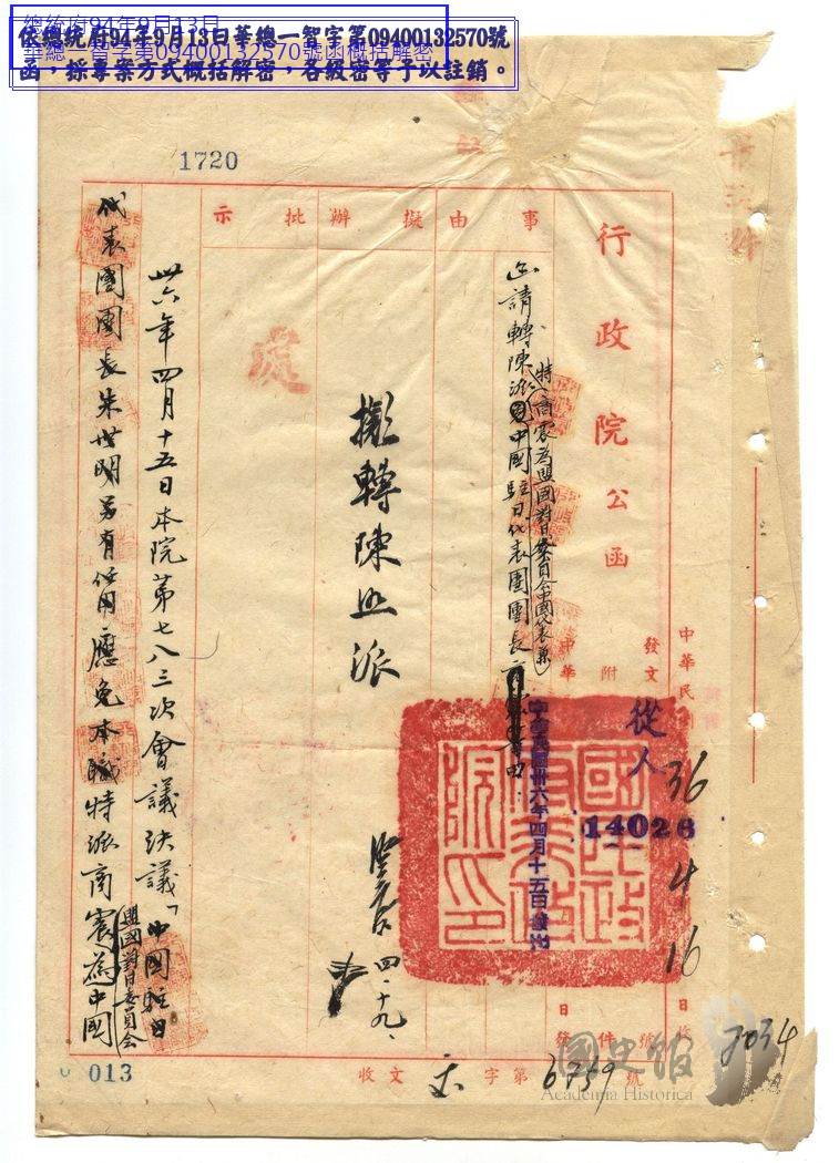 國民政府/人事/中央機關人員任免/駐外顧問團代表團任免