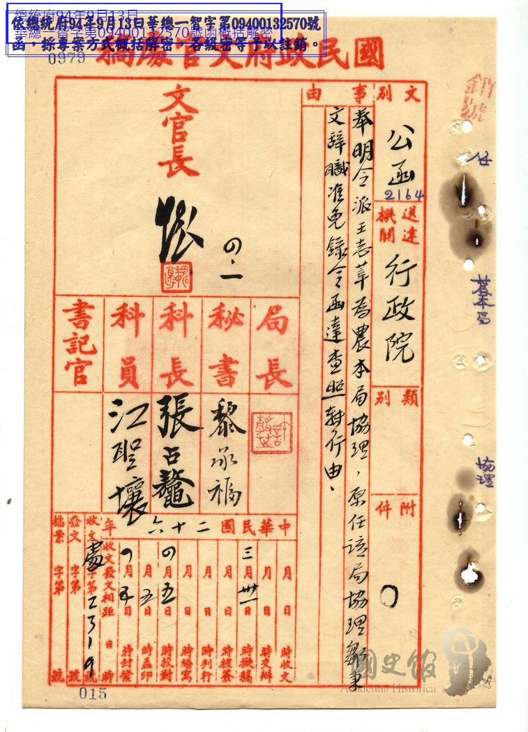 國民政府/人事/中央機關人員任免/農林機構人員任免