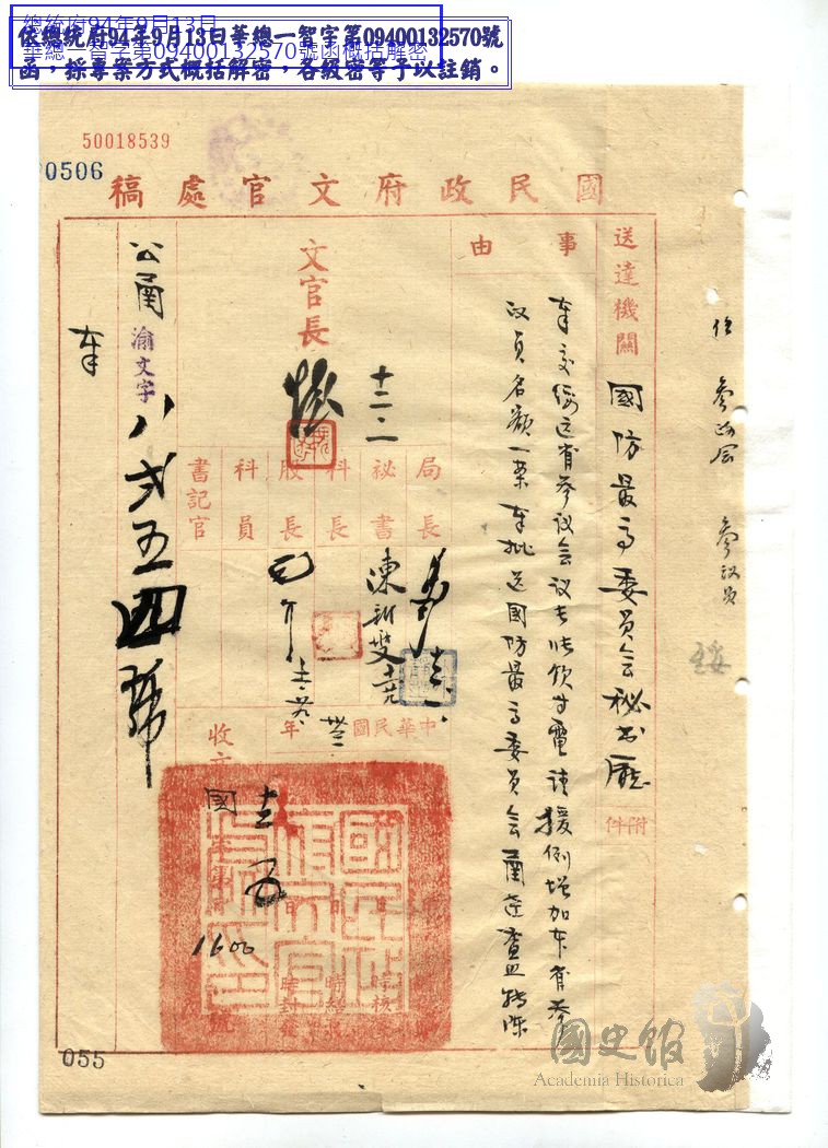 國民政府文官處函國防最高委員會秘書廳為奉交緩遠省參議會議長張欽等電請援例增加綏遠省名額俾便選舉一案奉批送國防最高委員會函達查照轉陳