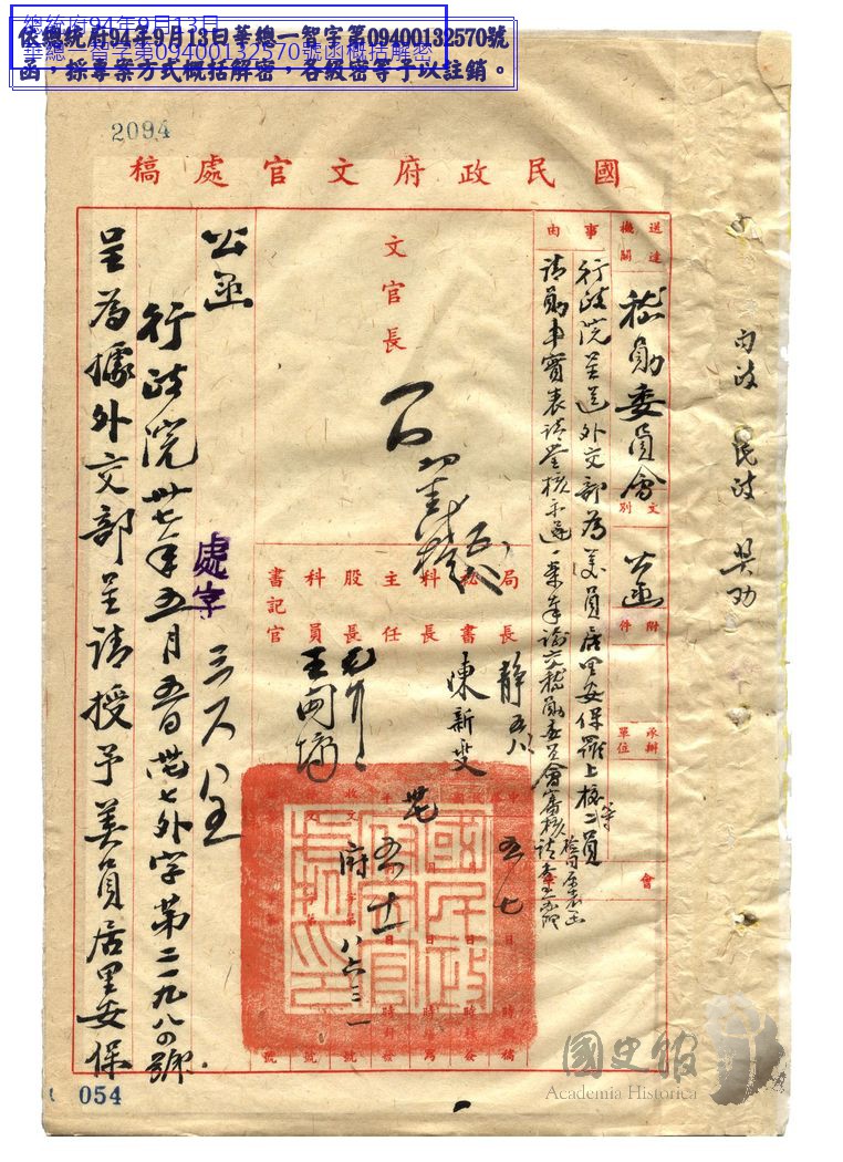國民政府文官處函稽勛委員會為美員居里安保羅上校等二員請勛事實表請核給勛章案奉交稽勛委員會審核