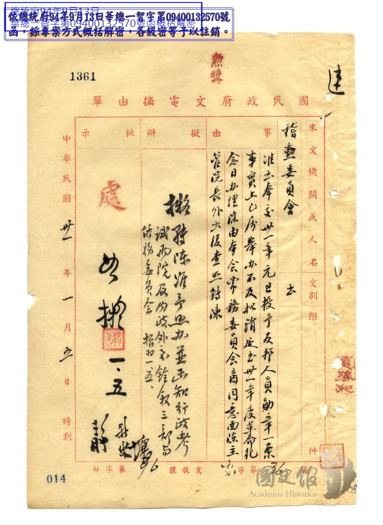 稽勛委員會函國民政府文官處為三十一年元旦授予友邦人員勛章案擬請延至三十一年度革命紀念日辦理
