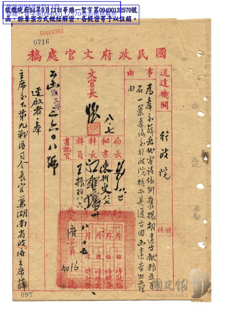 國民政府/人事/褒揚/匾額、題贈