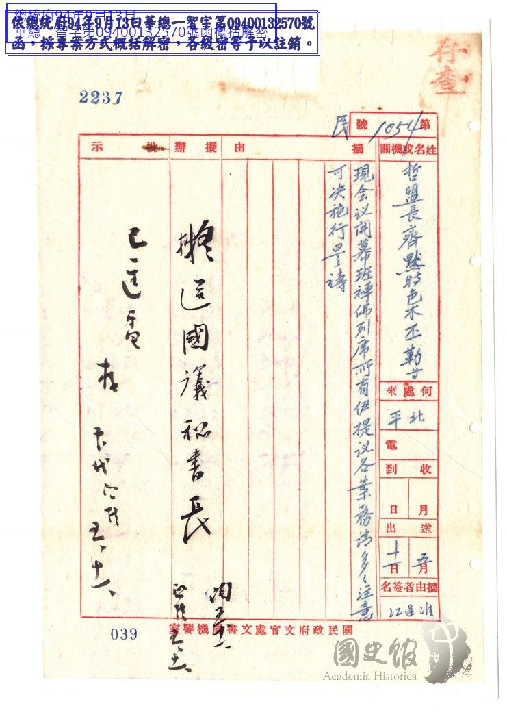 哲里木盟盟長齊默特色木丕勒等電國民政府國民代表會等為現在會議開幕班禪佛列席所有伊提議各案務請可決施行