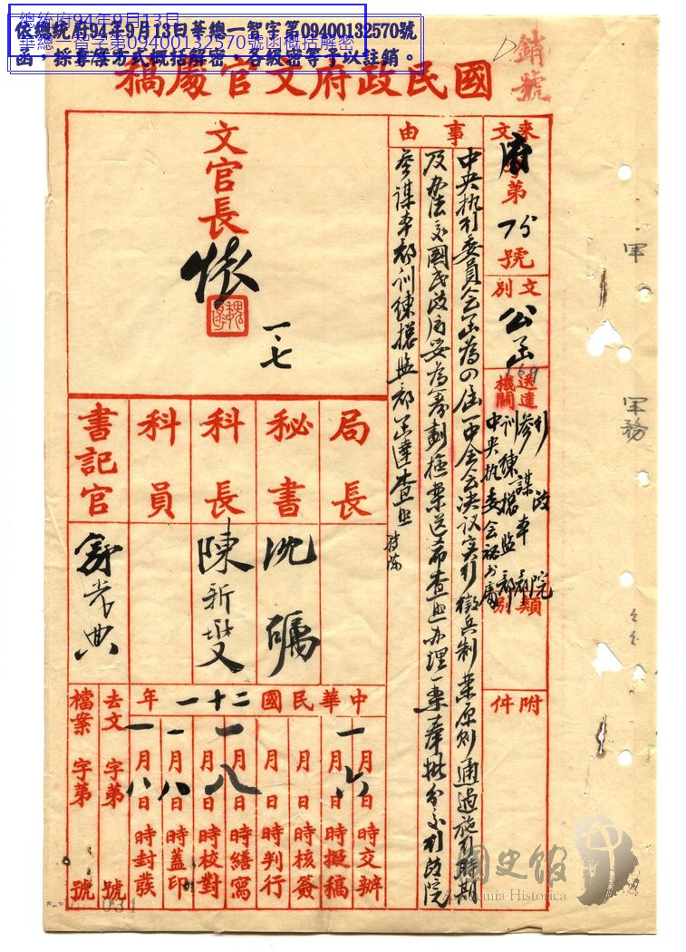 中國國民黨四屆一中全會軍政案(二)