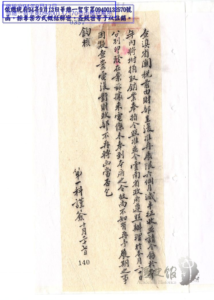 雲南省政府主席龍雲電呈國民政府主席蔣中正為懇准雲南省關稅暫仍減半徵收以恤民情
