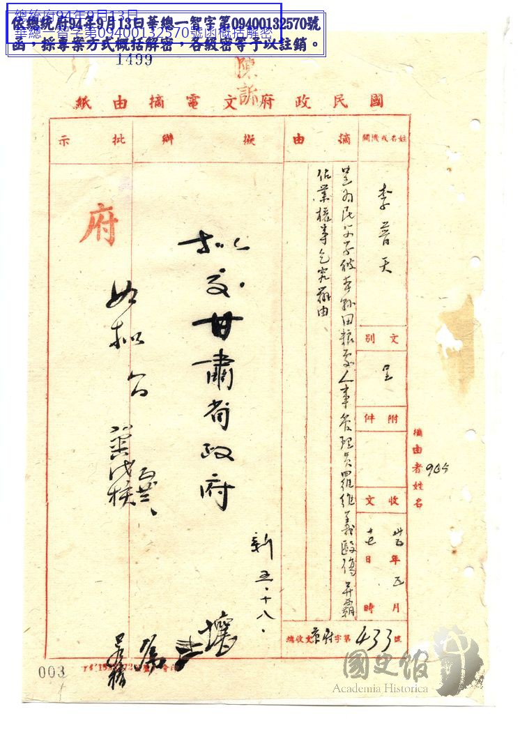 李普天呈國民政府為被甘肅省渭源縣田糧處人事管理員羅維義毆傷並霸占業權乞究辦