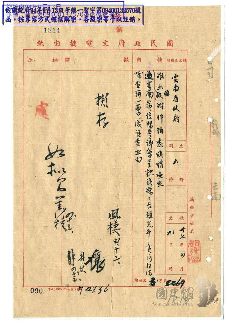 雲南省政府主席盧漢函國民政府文官處為准函送威信縣參議會呈控縣長趙光斗貪汙枉法一案已飭查辦復請查照