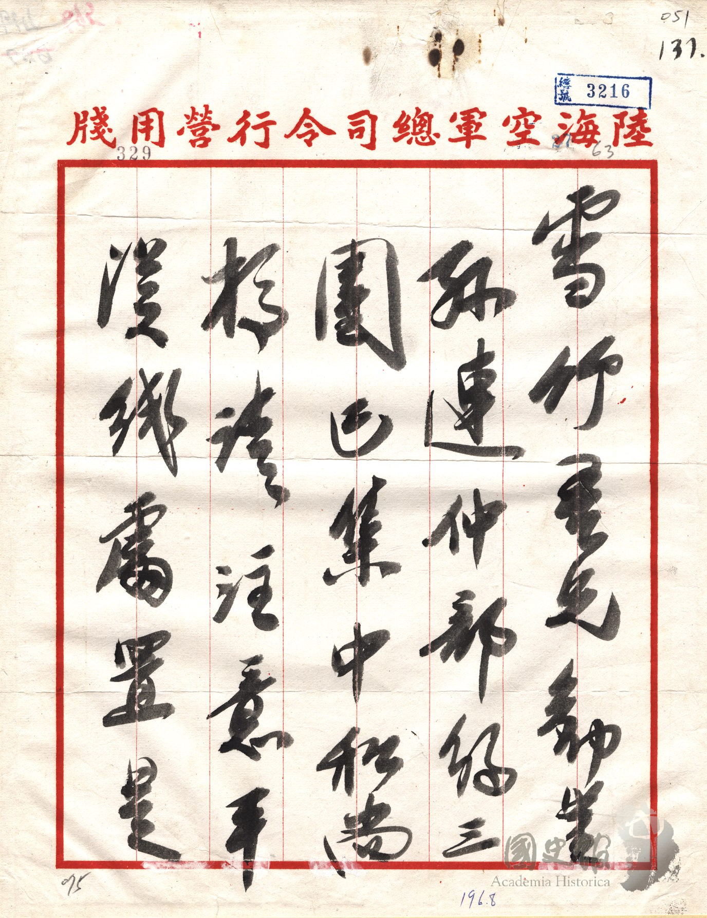 蔣中正函何成濬注意孫連仲集中和尚橋並詢平漢線布署是否照辦