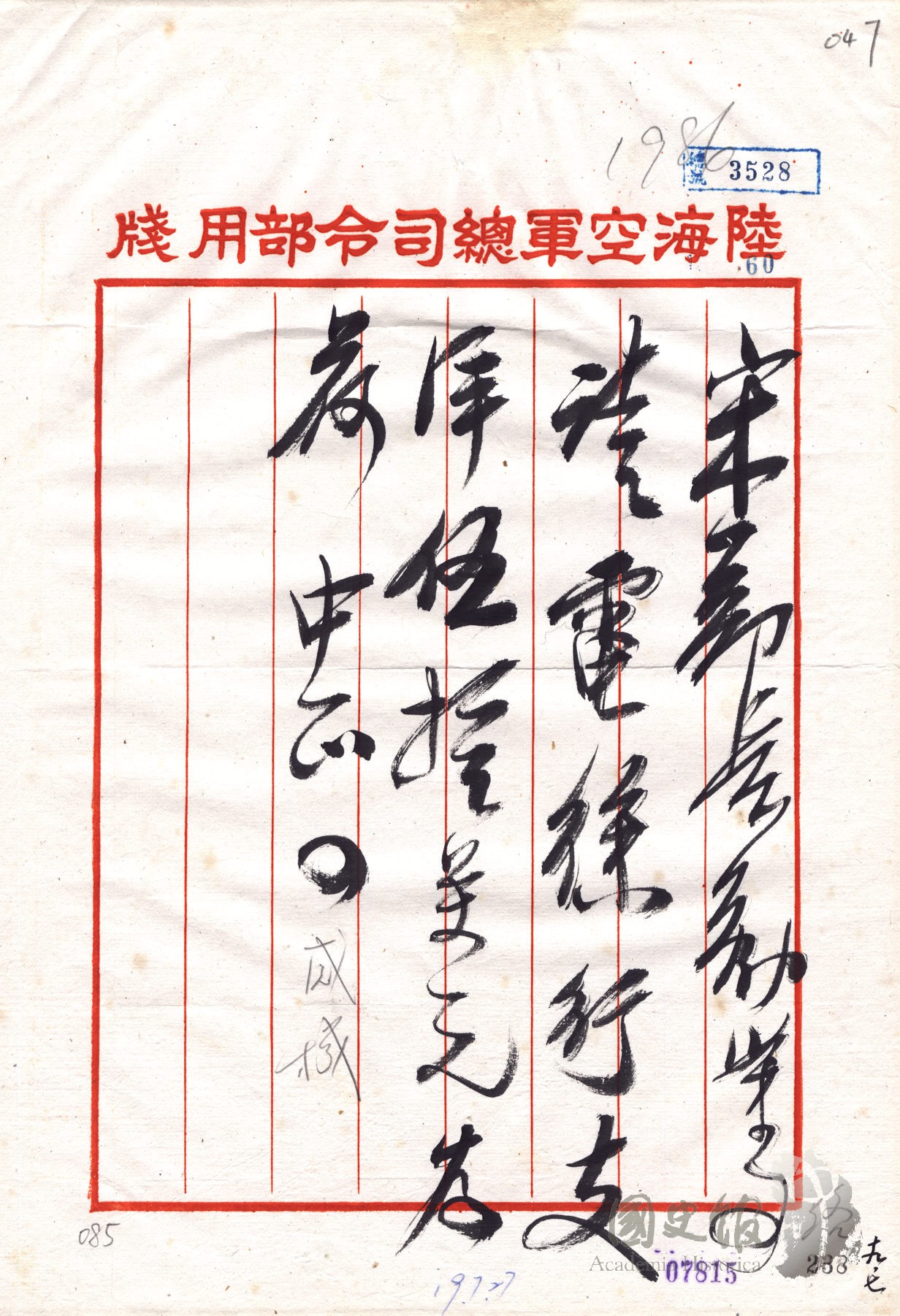 蔣中正總統文物/籌筆/統一時期/
