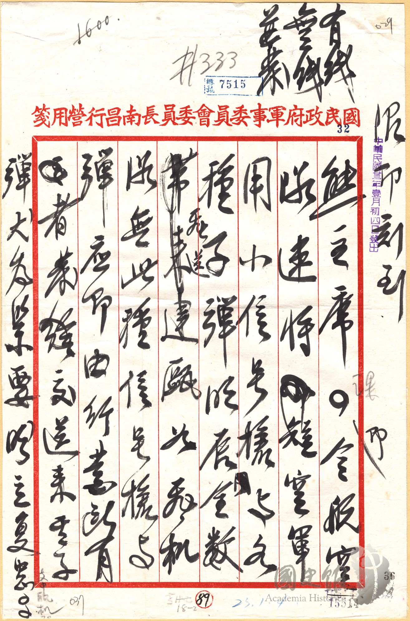 蔣中正電熊式輝令航空隊送信號槍與彈到建甌如無槍彈由行營發送