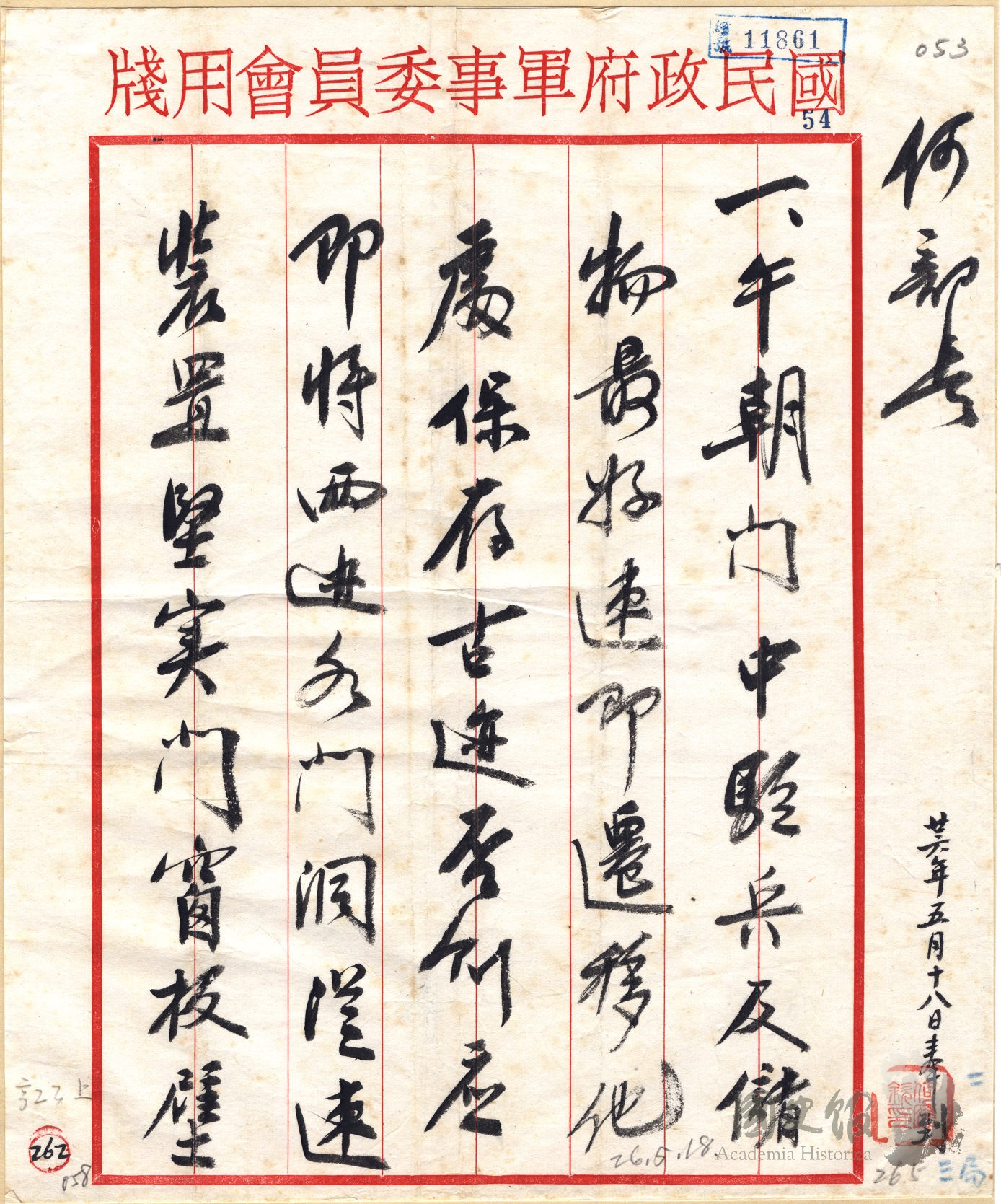 蔣中正電示何應欽修復及保存明故宮各城門古蹟