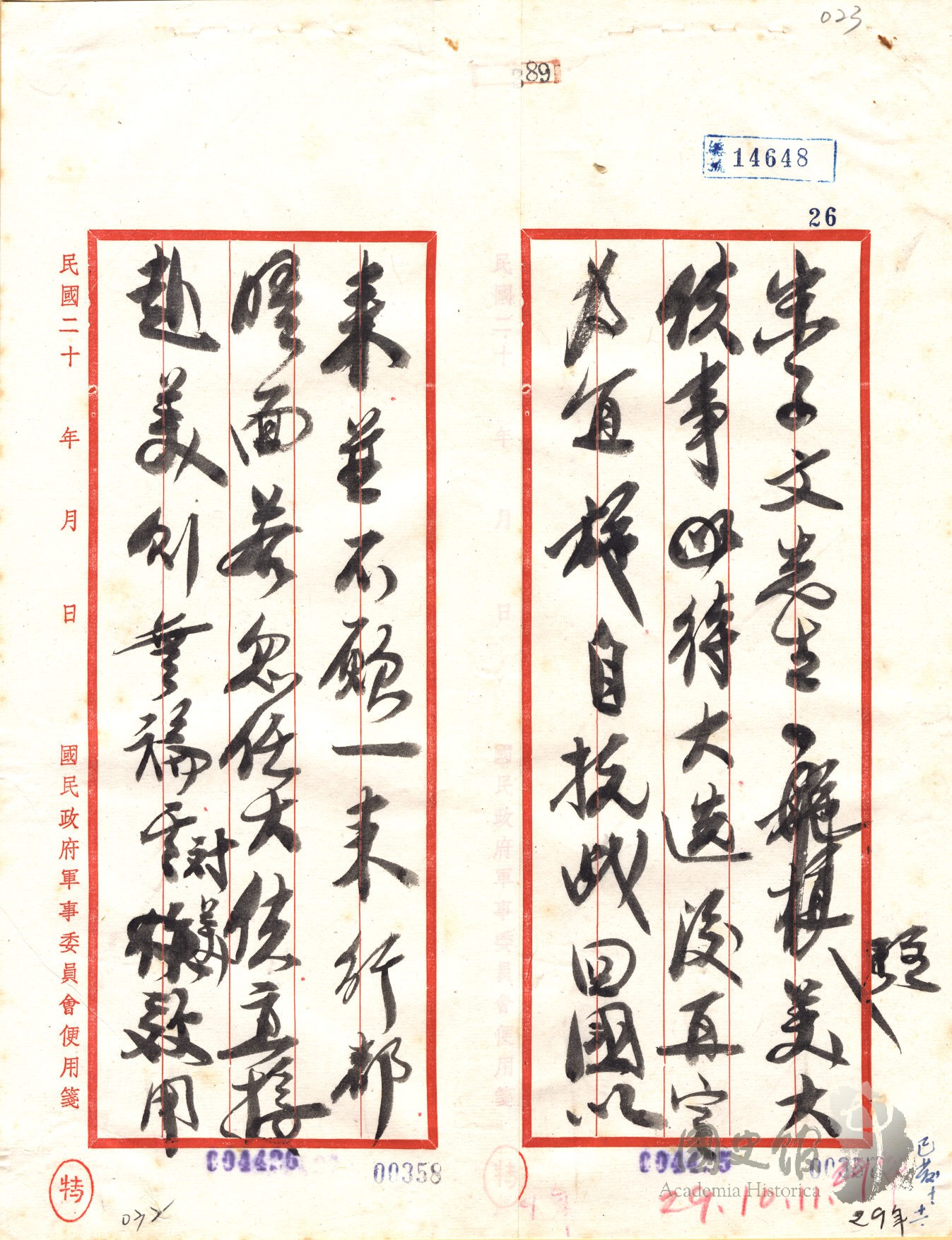 蔣中正電宋子文駐美大使人事案待大選後再定為宜