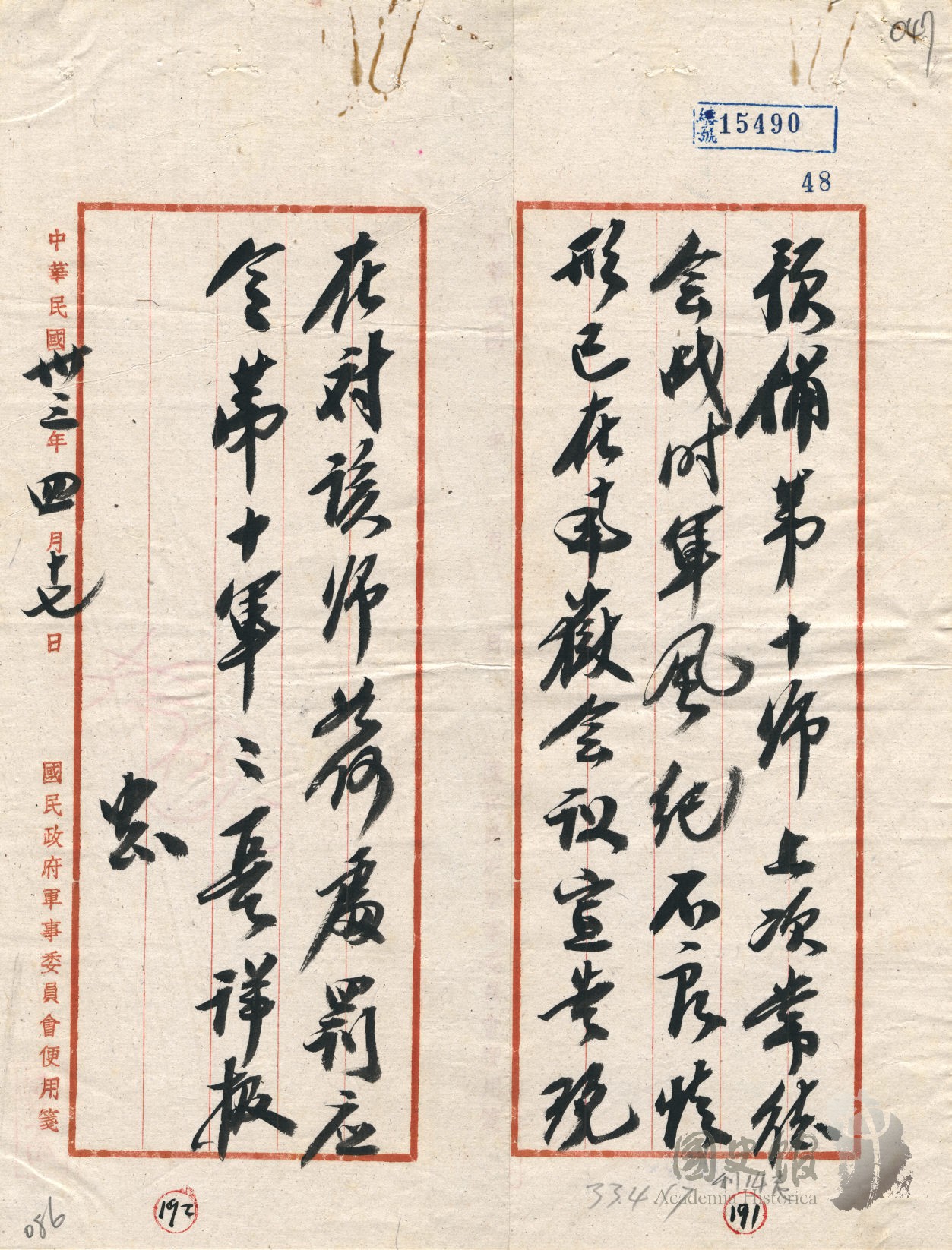 蔣中正指示第十軍軍長詳報常德會戰風紀不良之預備第十師如何處罰