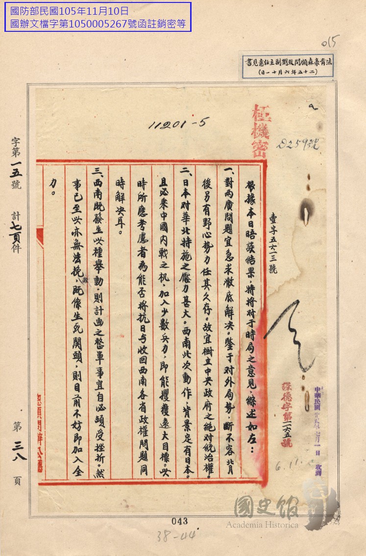 蔣中正總統文物/革命文獻/統一時期/