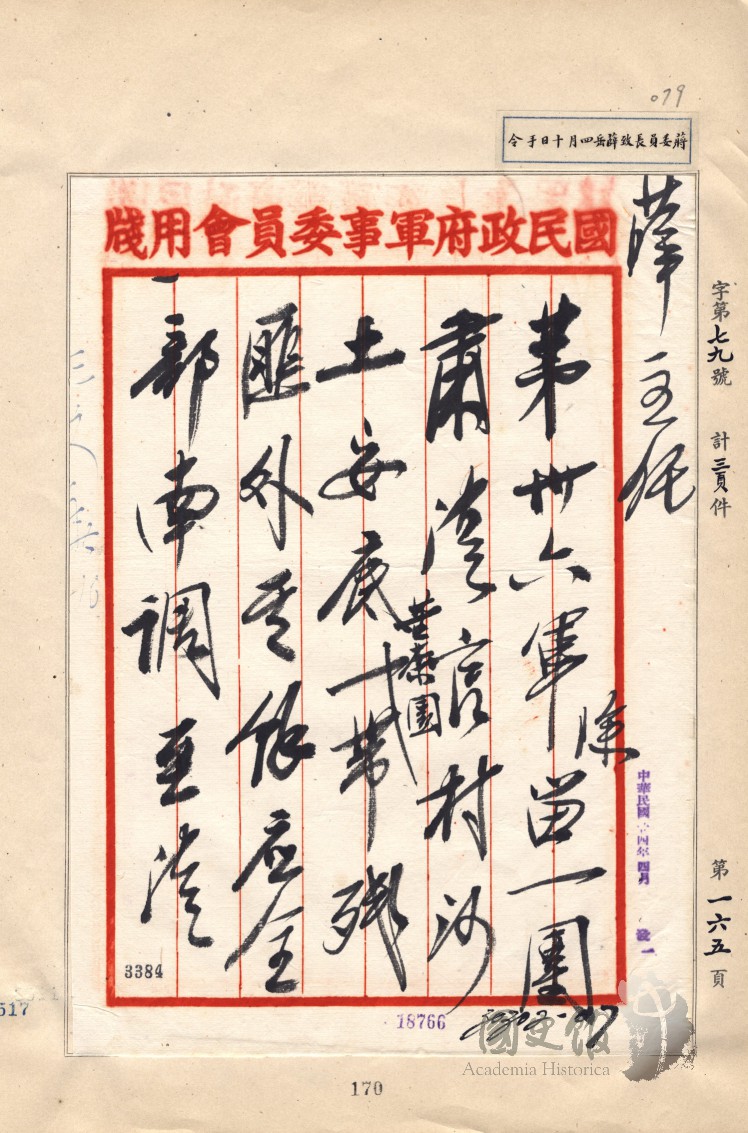 蔣中正電薛岳第十三師烏江以北之任務概交第四十七師負責