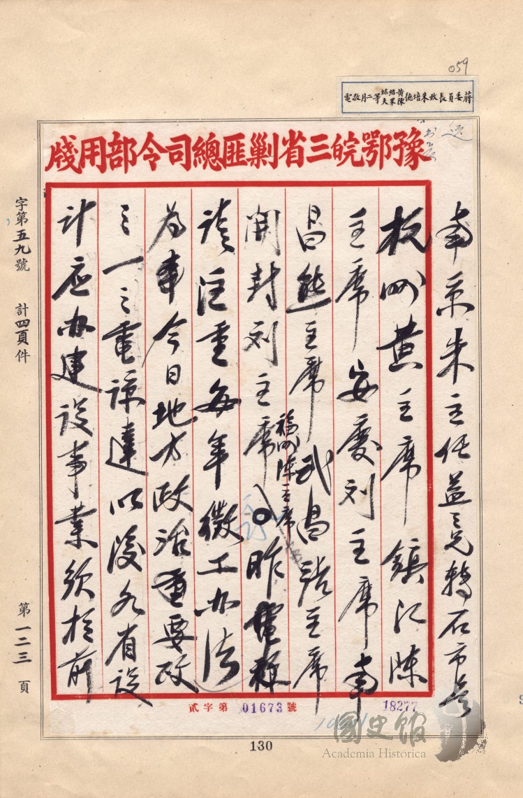 蔣中正電朱培德黃紹竑注重每年徵工辦法為今日地方政治要政之一