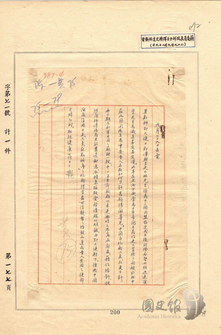 蔣中正電史達林德義日同盟協定後日將更有所作為吾人應取如何方針