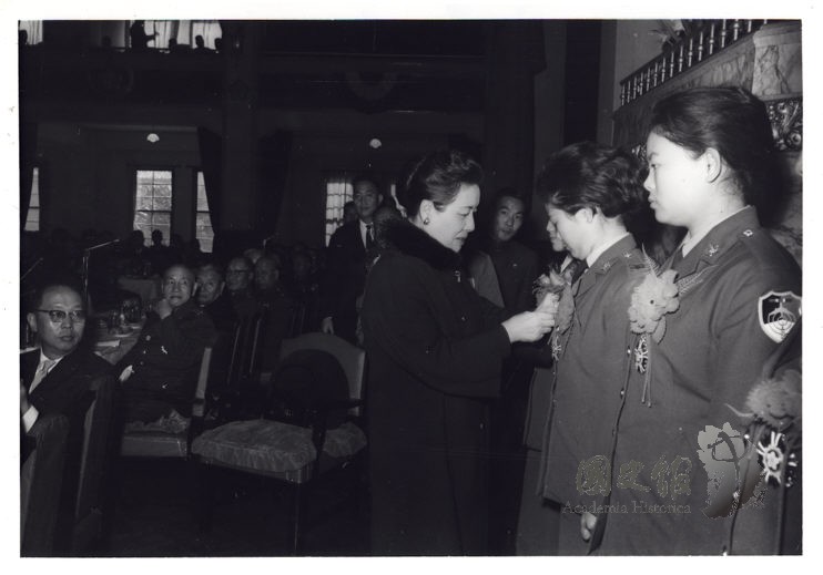 {#宋美齡#}為國軍英雄政士佩帶胸花