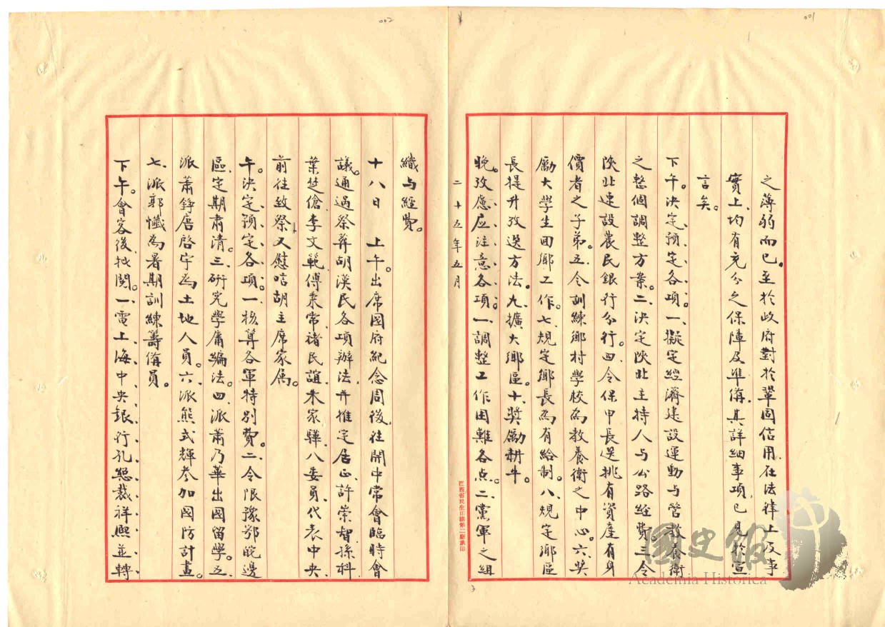 {#蔣中正#}出席國府紀念週後往開中常會臨時會議另電{#孔祥熙#}{#宋子文#}用善後公債向中央銀行等押借現款一案尚未照辦查此款係供修築川康公路之用請訓飭令中央中國交通各行照辦以免工程停滯又各行政督察專員成績應速評定且軍費與特別費應速調整等